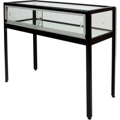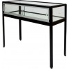 Vitrine d'exposition sur table avec pied en structure aluminium coloris noir.