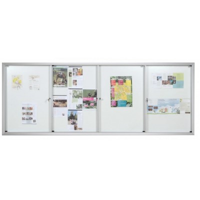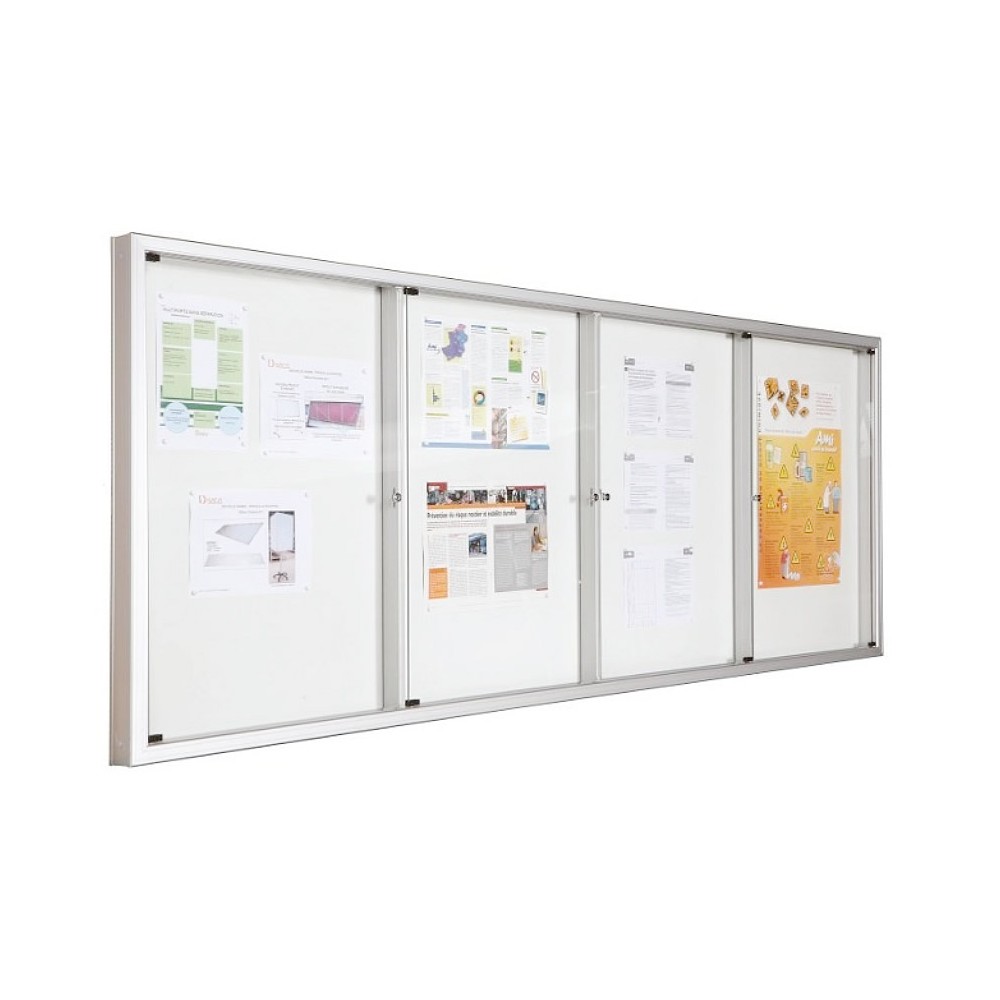 Cadre en aluminium anodisé et de plusieurs portes battantes, elle permet un affichage max de 54 formats A4
